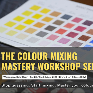 Quality over quantity: I cap each workshop at 10 participants so you get genuine one‑on‑one time. I can watch you paint, help troubleshoot your mixes, and answer your specific questions. It’s a working session, not a lecture—so you leave with skills you can use straight away. In this kind of supportive setting, real breakthroughs happen. If you’re ready to move past the sticking points and paint with confidence, register now and let’s elevate your colour together!